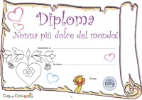 Diploma di nonna più dolce Un diploma da conferire alla nonna più dolce del mondo. Un diploma da stampare, colorare e regalare ad una nonna dolcissima, per augurarle una buona Festa dei nonni, per il suo compleanno o semplicemente per dirle quanto le vogliamo bene. DIPLOMA DA STAMPARE Cliccare sul diploma per stamparlo: