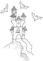 Disegno del castello dei fantasmi Un’inquietante castello infestato da fantasmi e pipistrelli, da stampare e colorare. Chi può abitarci? Cliccare sul disegno per stamparlo: