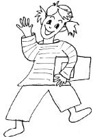 Disegno di bambina con un libro di scuola Una bambina molto allegra, con un grande libro sotto al braccio, da stampare e colorare. Cliccare sul disegno per stamparlo: