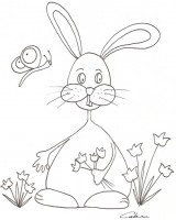 Disegno di un coniglio con tulipani Disegno da stampare e colorare di un coniglio veramente buffo che sta raccogliendo un mazzetto di tulipani. A chi vorrà regalarlo? Cliccare sul disegno per stamparlo: