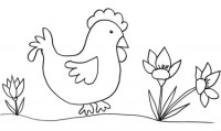 Disegno di gallina che passeggia Disegno di una gallina che passeggia tranquillamente in mezzo ai fiori, da stampare e colorare. Cliccare sul disegno per stamparlo: