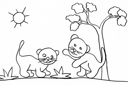 Disegno di leoncini che giocano Cuccioli di leone che giocano sotto uno splendido sole, da stampare e colorare. Cliccare sul disegno per stamparlo: