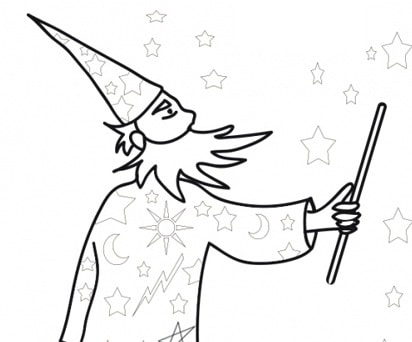 Disegno di Mago Merlino Mago Merlino da stampare e colorare. La legenda narra che Mago Merlino sia stato il tutore e il grande consigliere del famoso re Artù. Un disegno da colorare per raccontare questa bellissima storia e fare sognare i bambini! Cliccare sul disegno per stamparlo: