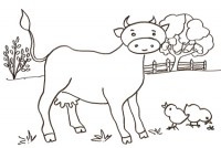 Disegno di mucca e pulcini Una simpatica mucca in un campo con dei pulcini, da stampare e colorare. Cliccare sul disegno da colorare: