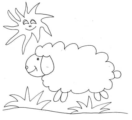 Disegno di pecora al sole Disegno di una grossa pecora dall’aria molto simpatica, sotto ad un grande sole, da stampare e colorare. Cliccare sul disegno per stamparlo: