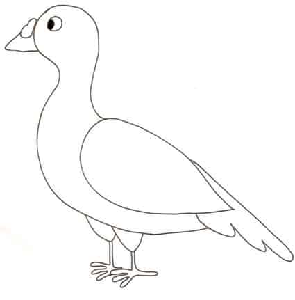 Disegno di piccione Un disegno di piccione da stampare e colorare. I bambini potranno facilmente cercare di osservare i colori di questo uccello da noi molto comune e riprodurli. Oppure inventarne altri, seguendo la loro fantasia… Cliccare sul disegno per stamparlo: