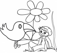 Disegno di Pollicino con il corvo Disegno di Pollicino che si riposa all’ombra di un bel fiore, da stampare e colorare. Un disegno per giocare e raccontare la storia di Pollicino che, tra le sue mille avventure, sarĂ anche rapito da un grande corvo… Cliccare sul disegno per stamparlo: