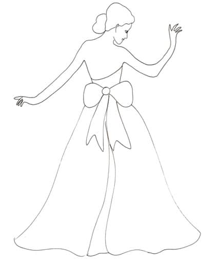 Disegno di principessa al ballo Una principessa in abito da ballo, con un meraviglioso ed elegante fiocco, da stampare e colorare gratuitamente. Cliccare sul disegno per stamparlo:
