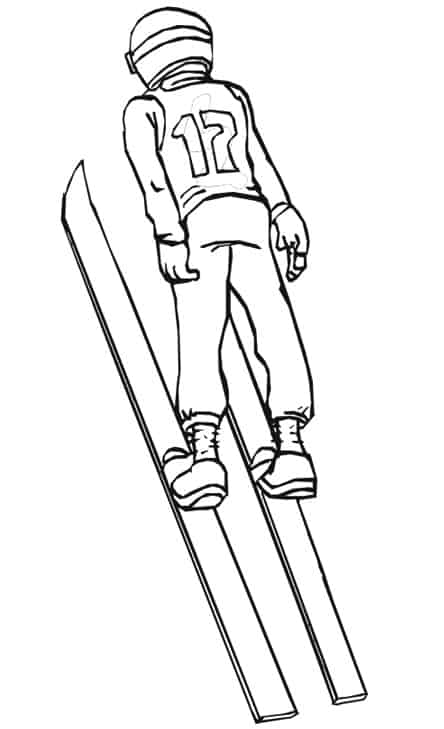 Disegno di salto con gli sci Un atleta in gara di salto con gli sci da stampare e colorare gratuitamente. Il salto con gli sci è una delle discipline delle Olimpiadi invernali.