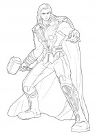 Un disegno di Thor da colorare, il mitico supereroe figlio di Odino. l’imperatore del pianeta Asgard. Thor veste con una corazza nera senza maniche, calzoni blu e stivali dorati, ha una forza sovraumana, una forza da Dio, e impugna un martello magico che solo lui riesce a sollevare.
