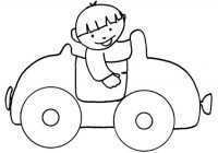 Disegno di un bambino in un auto decappottabile Un bambino alla guida di una bella macchinina decappottabile da stampare e colorare… sarà una macchina a pedali o elettrica? Cliccare sul disegno per stamparlo: