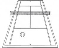 Disegno di un campo da tennis Un campo da tennis da stampare e colorare per imparare posizioni e regole del gioco del tennis. Cliccare sul disegno per stamparlo: