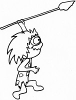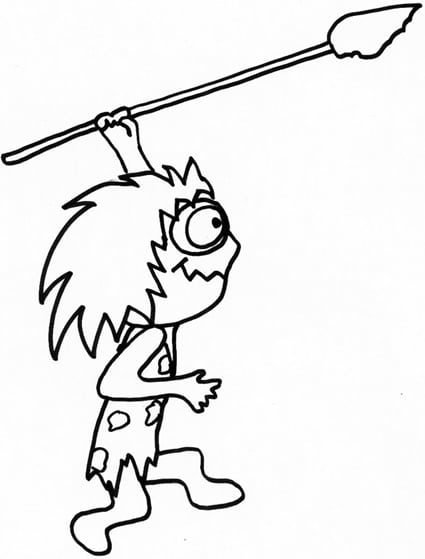 Disegno di un cavernicolo cacciatore Un uomo delle caverne occupato a cacciare con una lunga lancia, da stampare e colorare. Cliccare sul disegno per stamparlo: