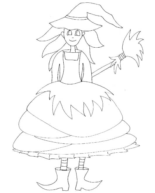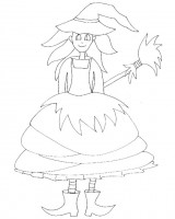 Disegno di una giovane strega Una giovane strega molto carina, dall’aria simpatica e divertente, da stampare e colorare. Cliccare sul disegno per stamparlo:
