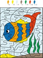 Soluzione: Se i risultati delle operazioni sono giusti ed il bambino ha associato i colori in modo corretto, apparirà un pesce felice di nuotare nel mare!