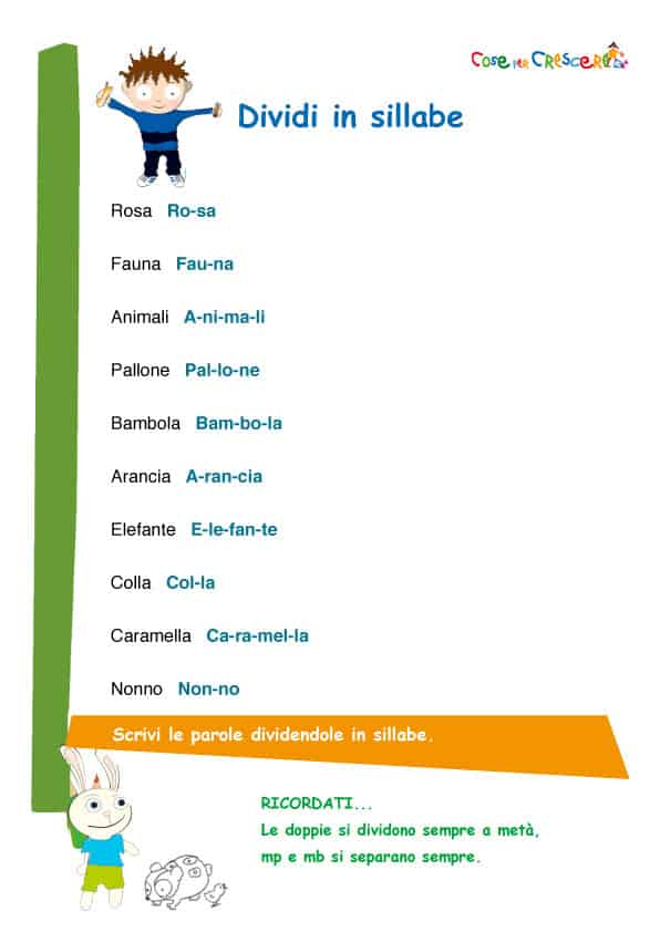 - Alla fine dell’esercizio, rileggere le parole con il bambino e correggere insieme gli eventuali errori.