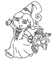 Dora l’esploratrice a Carnevale da colorare Un disegno di Dora l’esploratrice da stampare e colorare per Carnevale: la nostra amica Dora ha indossato un bellissimo vestito da principessa e corre a festeggiare ad una festa accompagnata dalla sua fedele amica scimmietta. DISEGNO DA STAMPARE Clicca sul disegno per stamparlo: