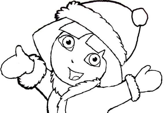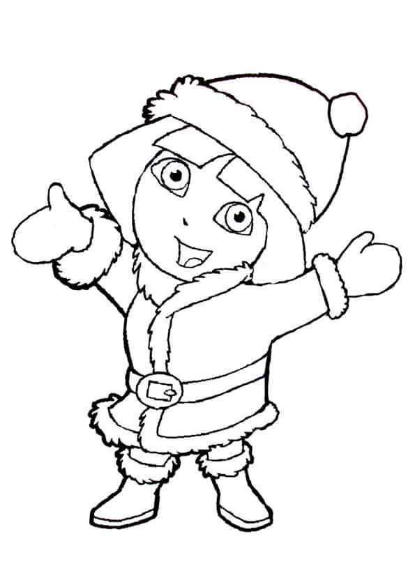 Dora l’esploratrice a Natale da colorare Un disegno di Dora l’esploratrice vestita da Babbo Natale, con un bel cappotto e un bel cappello da colorare di rosso e bordato da una soffice pelliccia bianca. Un disegno di Natale per bambini da stampare e colorare gratuitamente. DISEGNO DA STAMPARE Cliccare sul disegno per stamparlo: