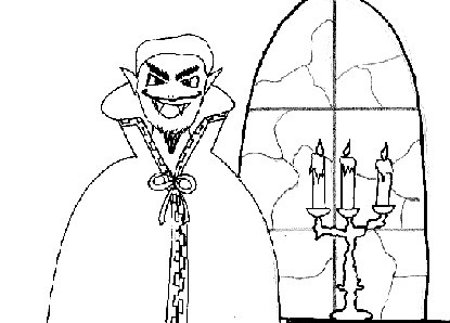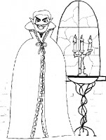 Dracula da colorare Disegno del terribile conte Dracula, il vampiro cattivo e crudele, da stampare e colorare. Cliccare sul disegno per stamparlo: