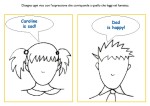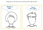 Con il bambino, leggete il testo di ogni fumetto e mimatene l’espressione. Chiedete poi al bambino di completare il disegno corrispondente.