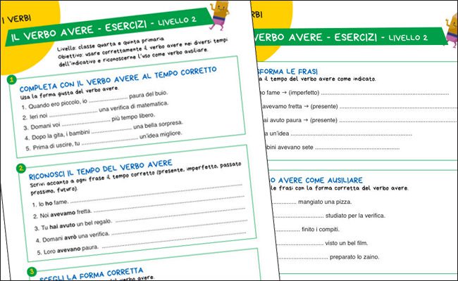 Gli esercizi verbo avere classe quarta primaria e gli esercizi verbo avere classe quinta primaria sono fondamentali per aiutare i bambini a: