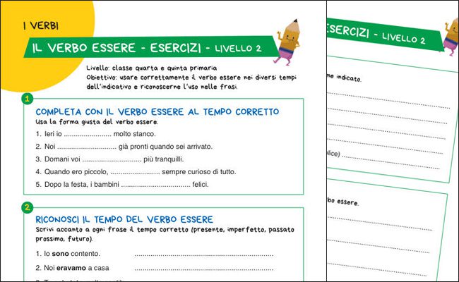 👉 Scarica le schede di esercizi sul verbo essere per la classe quarta e quinta primaria