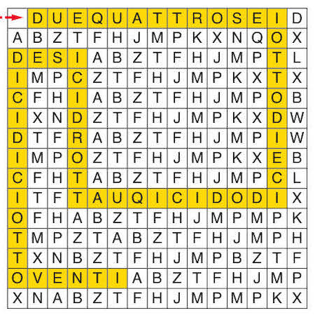 3. Trova i numeri nascosti: i risultati della tabellina del 2 sono scritti in lettere e nascosti nella griglia. Vuoi verificare se hai fatto giusto? Clicca qui per vedere la soluzione!