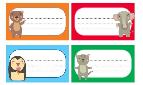 Una serie di etichette con animali per bambini, adatte ai bimbi che frequentano la scuola dell’infanzia e a quelli della scuola primaria. Etichette per personalizzare libri e quaderni, da stampare gratuitamente e da incollare o da inserire nell’apposito spazio delle copertine. Le etichette possono anche essere stampate direttamente su un foglio di carta per stampante adesiva o, nel caso si dovesse inserirle nelle copertine, su un foglio di cartoncino bianco del tipo da disegno.