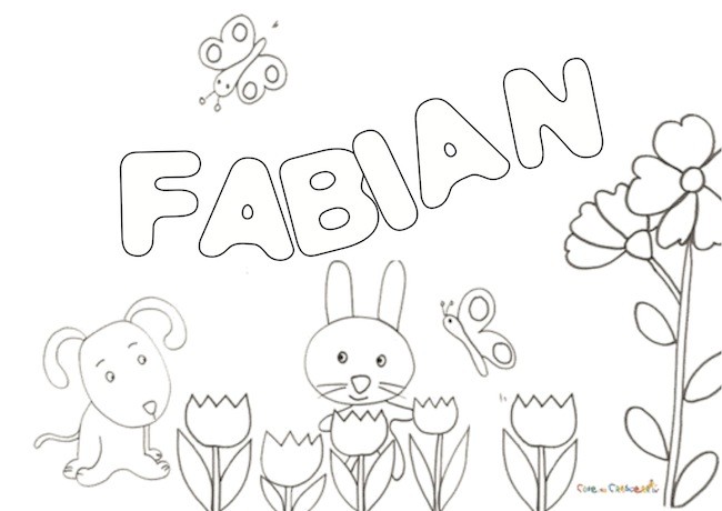 Disegno del nome FABIAN pronto da stampare e da dare alla vostra bimba da colorare, per divertirsi con il proprio nome ed impararne i caratteri.