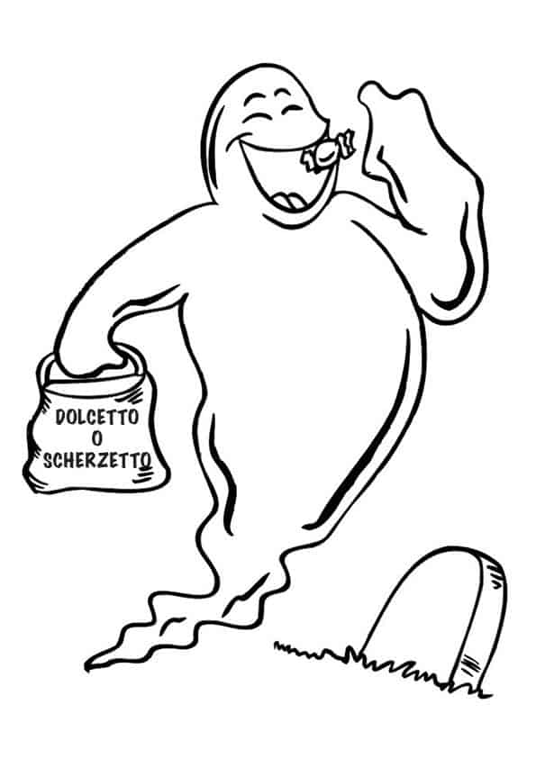 Un simpatico fantasma da colorare per prepararsi alla festa più paurosa dell’anno: un fantasma sorridente e molto goloso, felice di mangiare una bella caramella! Fantasma Halloween disegno è un disegno da colorare per bambini da stampare gratuitamente.