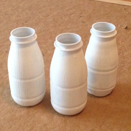 - Dipingere le bottigliette di bianco e lasciare asciugare. Se necessario, dare una seconda mano di pittura dopo una ventina di minuti.