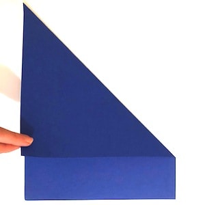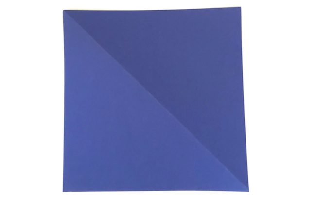 - Prendere uno dei vertici superiori tra le dita e ripiegarlo come nell’immagine. I bordi laterali del foglio devono essere perfettamente in linea uno sopra l’altro.