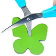 - Disegnare una mezza farfalla su un foglio di gomma crepla. Piegare il foglio in due, lungo l’asse centrale della farfalla. Ritagliare il foglio di gomma crepla sul doppio spessore e aprirlo.