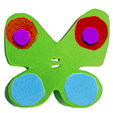 - Ritagliare dei cerchi di diverse dimensioni nei fogli di gomma crespa di altri colori. Incollarli sulle ali della farfalla per decorarle.