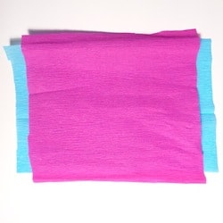 - Ritagliare un rettangolo di 16 cm x 14 cm nella carta crespa azzurra e un quadrato di 14 cm x 14 cm nella carta crespa rosa. Metterli uno sopra l’altro.