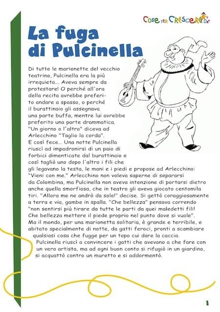Di tutte le marionette del vecchio teatrino, Pulcinella era la più irrequieta… Aveva sempre da protestare! O perché all’ora della recita avrebbe preferito andare a spasso, o perché il burattinaio gli assegnava una parte buffa, mentre lui avrebbe preferito una parte drammatica.