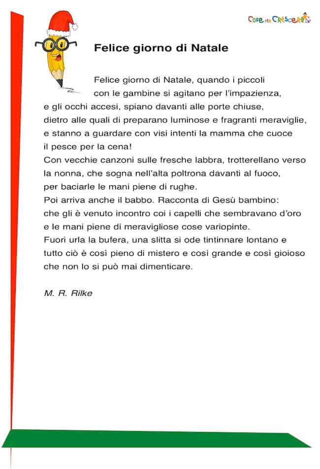 Un dettato su Natale con difficoltà ortografiche miste da proporre ai bambini della scuola primaria, adatto alle classi terza, quarta e quinta. Un testo scritto da M.R. Rilke.