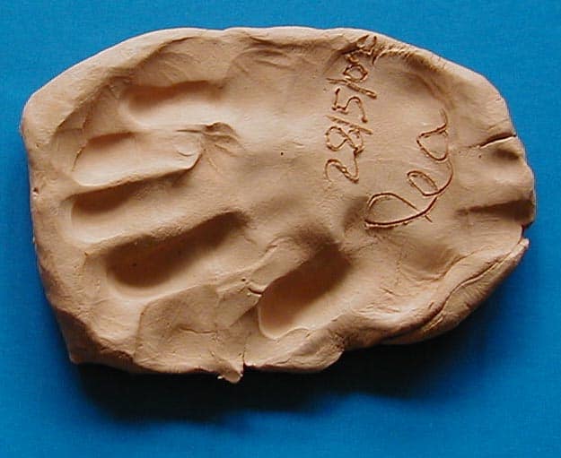 - Aiutate il bambino ad appoggiare e premere una mano o un piede sulla pasta, in modo da lasciarci un’impronta.