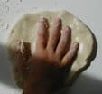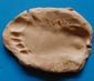 - Chiedete al bambino di modellare una grossa palla e di appiattirla leggermente con il mattarello in modo da ottenere una base abbastanza larga e lunga da poter appoggiarci completamente una mano o un piede. La pasta deve avere uno spessore minimo di 2 cm.