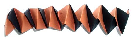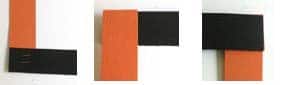 - Unire, sempre con la pinzatrice, le 2 strisce di colori diversi ad angolo, come mostrato dall’immagine.
