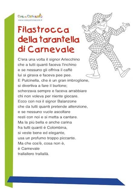Filastrocca la tarantella di Carnevale da stampare
