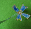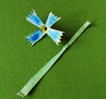 - Con le forbici, fare quattro intagli (come prima) e fare una serie d’intagli più piccoli sulle 4 estremità. Schiacciare il fiore per appiattirlo.
