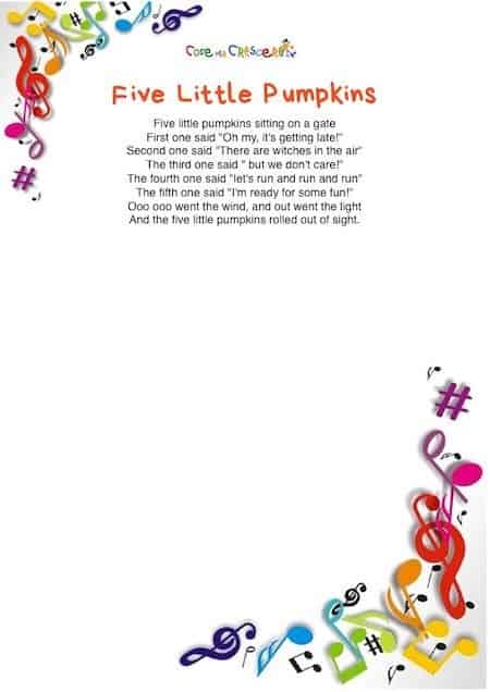 Five Little Pumpkins è una famosa canzone di Halloween inglese scritta da Raffi Cavoukian da fare conoscere ai bambini. Un modo divertente per approcciarsi alla lingua inglese! Una filastrocca facile da imparare, adatta anche ai bambini più piccoli che frequentano la scuola dell’infanzia. Per ridere e scacciare le proprie paure! Proponiamo il video tratto da Youtube, il testo da leggere online, da scaricare e stampare gratuitamente (scorrendo la pagina verso il basso). Per impararlo e cantarlo insieme!