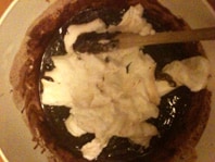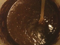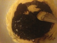 - In un pentolino, o nel forno a microonde, fare sciogliere il cioccolato con un cucchiaio di latte e aggiungerlo al composto.