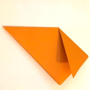 - Prendere il vertice destro e ripiegarlo lungo la linea centrale, fino al vertice inferiore, come nell’immagine.