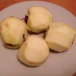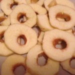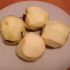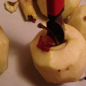 - Sbucciate le mele e togliete loro torsolo e semi con l’apposito attrezzo. Tagliatele a rondelle di 1 o 2 cm di spessore.