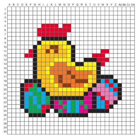 Cerchi un’attività di Pixel Art di Pasqua divertente e stimolante per i bambini? Ecco un disegno perfetto per la scuola primaria e dell’infanzia: una Gallina di Pasqua in Pixel Art tutta da riprodurre e disegnare! Scarica la griglia numerata e il modello e lascia che i bambini si divertano a riprodurre l’immagine casella dopo casella. Un’attività divertente da proporre come attività in alternativa o in aggiunta ai lavoretti di Pasqua.
