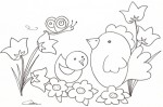 Questo pulcino è davvero felice! Disegno di un simpatico pulcino da stampare e colorare. Il nostro pulcino è felice di stare con la sua mamma in mezzo a tanti bellissimi fiori. Un disegno dalle forme ampie e spaziose, che i bimbi più piccoli potranno colorare facilmente, usando tanti colori.