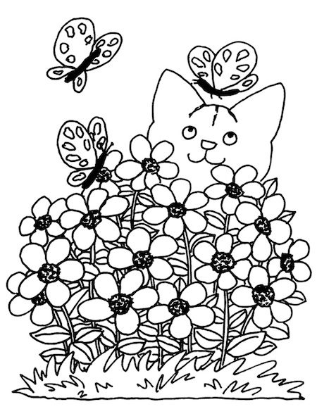 Un disegno per celebrare la primavera da proporre ai bambini: un buffo gatto nei fiori da colorare, un gattino buffo e furbetto che gioca a nascondersi in un bellissimo campo di fiori. Un disegno da colorare adatto ai bambini della scuola primaria e ai bimbi più piccoli che frequentano la scuola dell’infanzia. Per stampare il disegno, basta scorrere la pagina verso il basso e cliccare sul disegno per bambini dove segnato: si aprirà una seconda finestra con il disegno del gatto nei fiori in formato pdf, pronto per essere scaricato e/o direttamente stampato con una normale stampante.
