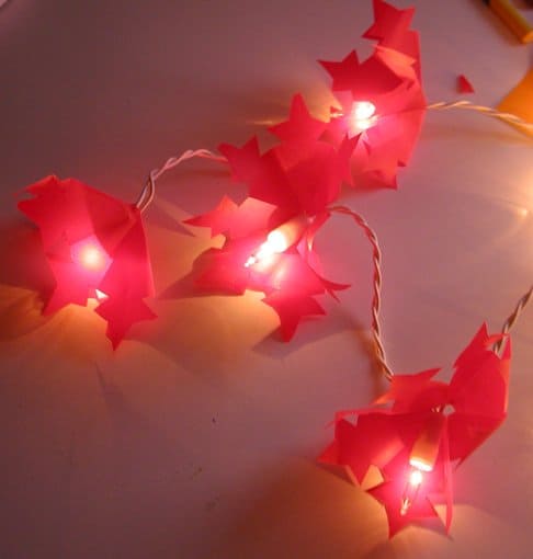 • Infilare un foglio su ogni lucina della ghirlanda luminosa.